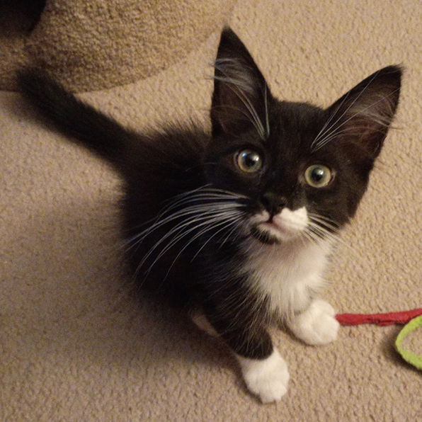 My husband and I have two cats. A little black cat named Murcie and a new tuxedo named Ozzy. For a long time we were a family of two humans and four cats, but old age has taken three of the cats. Murcie is the last kitty left of our little family unit. The other three still feel like a part of the family and we think and talk about them often. Ozzy and his littermates were dumped in my mom's yard at about 4 weeks of age. He's a confident, curious little guy (11 weeks at the time of writing this!).
